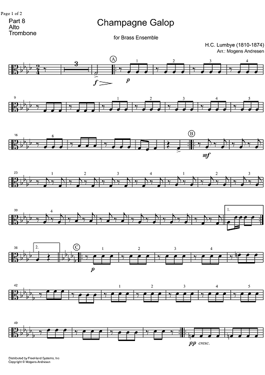 Digital Sheet Music for Champagne Galop - Alto Trombone by Mogens Andresen, Hans Lumbye scored for Brass Ensemble; id:328076