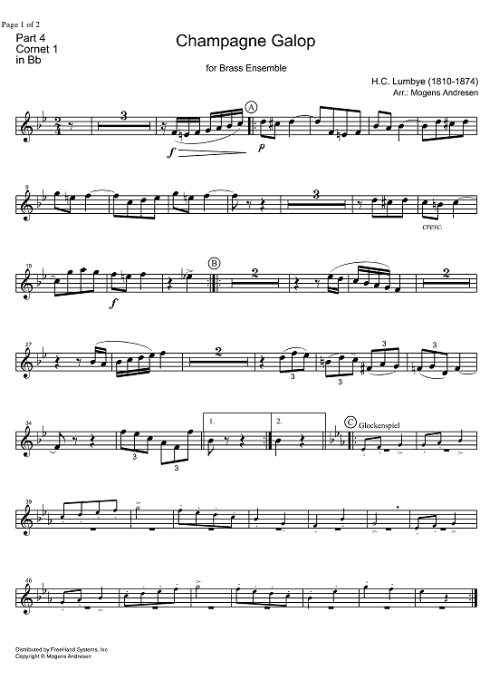 "Champagne Galop - B-flat Cornet 1" Sheet Music by Hans Lumbye