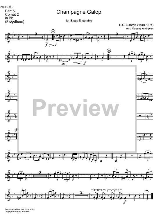 Digital Sheet Music for Champagne Galop - B-flat Cornet 2 by Mogens Andresen, Hans Lumbye scored for Brass Ensemble; id:328070