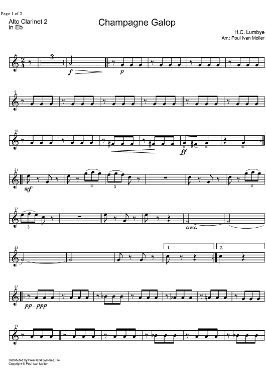 Digital Sheet Music for Champagne Galop - E-flat Alto Clarinet 2 by , Hans Lumbye, Poul Ivan Moller scored for Concert Band; id:328467