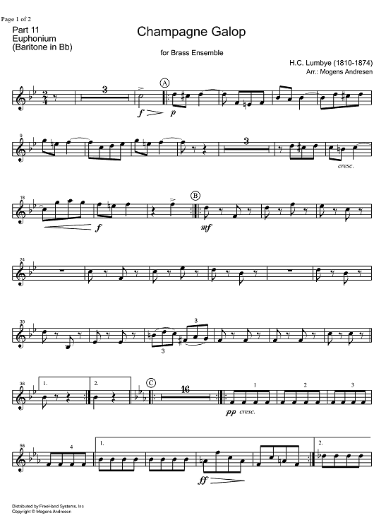 Digital Sheet Music for Champagne Galop - Euphonium by Mogens Andresen, Hans Lumbye scored for Brass Ensemble; id:328080