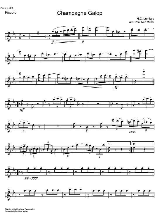 "Champagne Galop - Piccolo" Sheet Music by Hans Lumbye