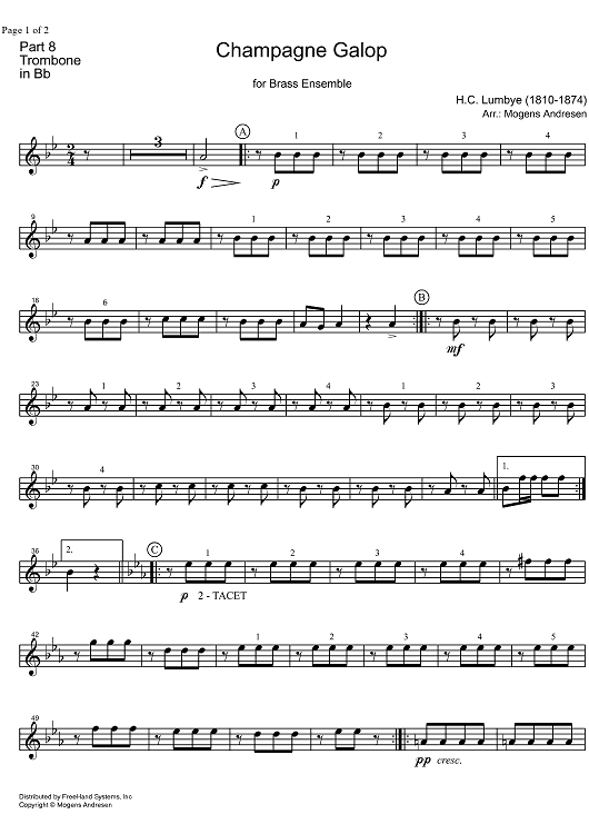 "Champagne Galop - Trombone" Sheet Music by Hans Lumbye