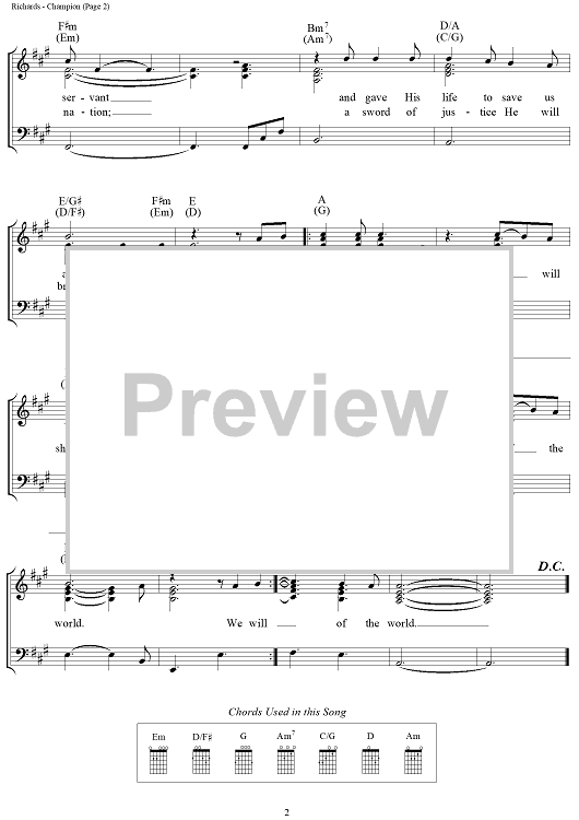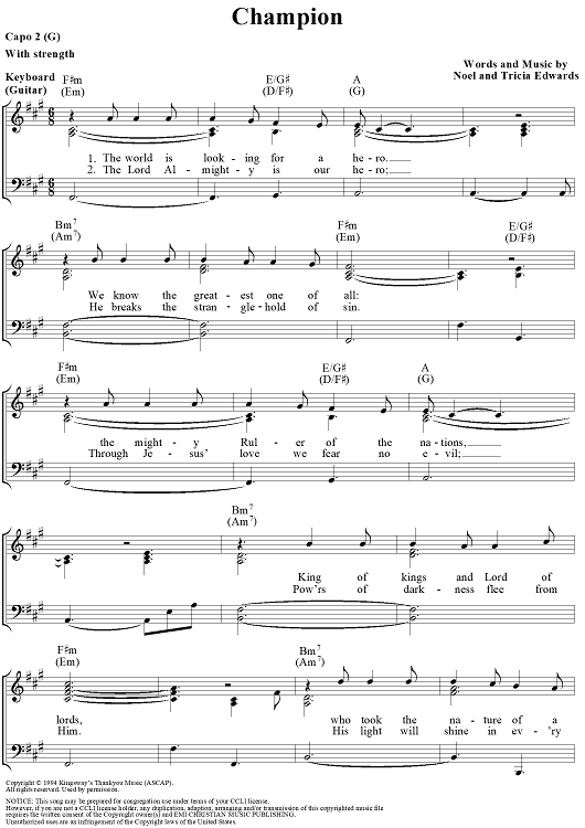 Digital Sheet Music for Champion by Noel Richards, Tricia Richards scored for Piano/Vocal/Chords; id:109588