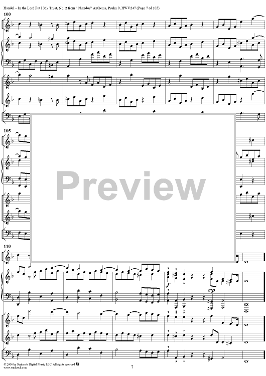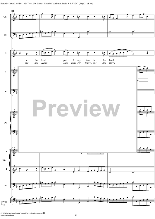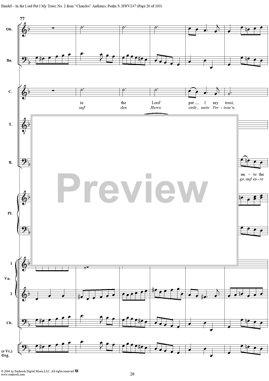 Digital Sheet Music for "Chandos" Anthems: No. 2, In the Lord Put I My Trust by George Frideric Handel scored for Vocal Score; id:305489