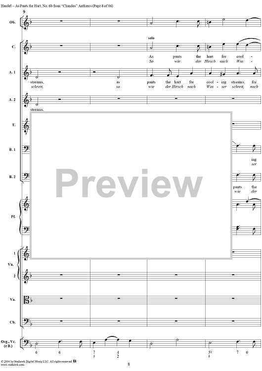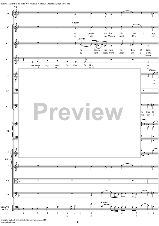 Digital Sheet Music for "Chandos" Anthems: No. 6b, As Pants the Hart by George Frideric Handel scored for Vocal Score; id:305495