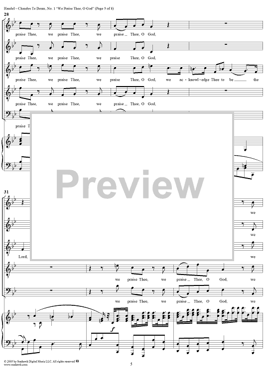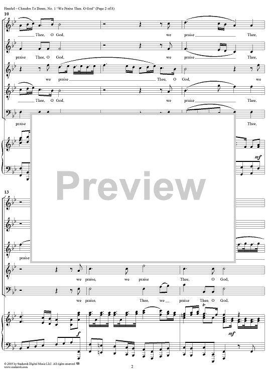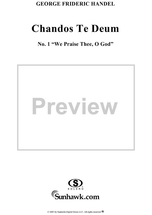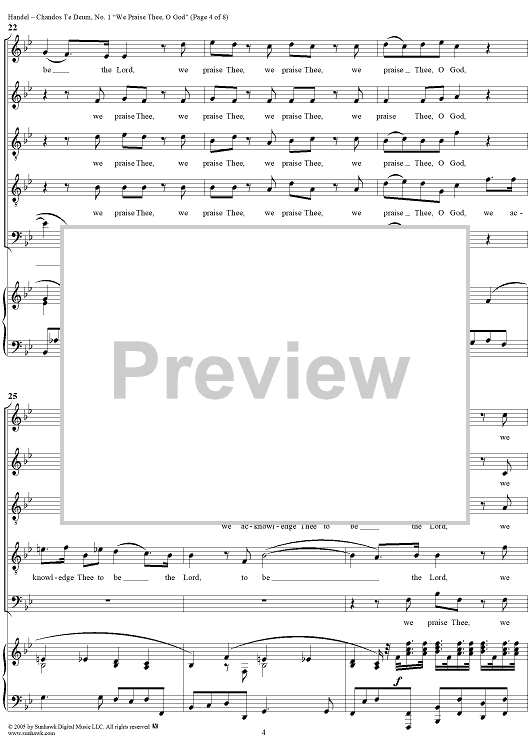 Digital Sheet Music for Chandos Te Deum in B-flat Major, HWV281: No. 1, We Praise Thee, O God by George Frideric Handel scored for Four-part Mixed Chorus/Piano; id:304750