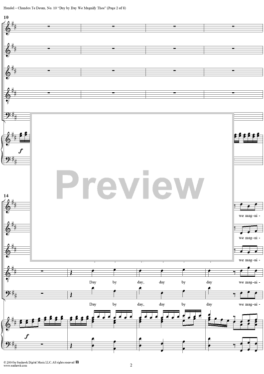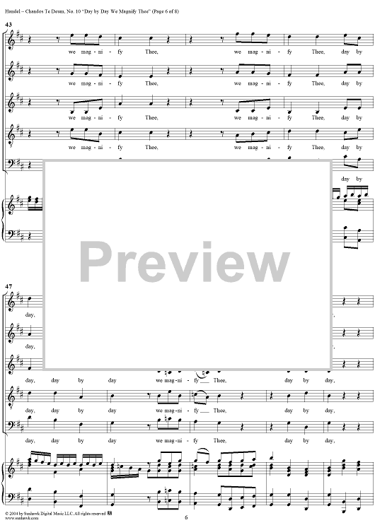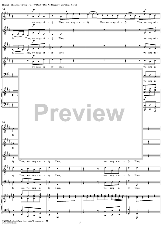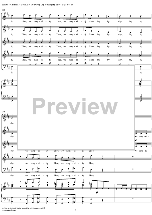 Digital Sheet Music for Chandos Te Deum in B-flat Major, HWV281: No. 10, Day by Day We Magnify Thee by George Frideric Handel scored for Four-part Mixed Chorus/Piano; id:304761