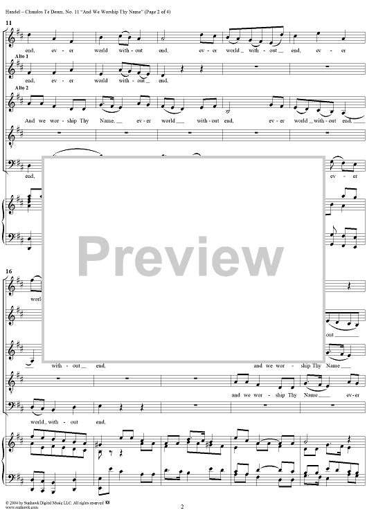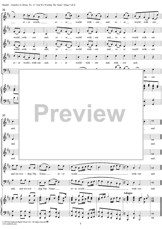 "Chandos Te Deum in B-flat Major, HWV281: No. 11, And We Worship Thy Name" Sheet Music by George Frideric Handel