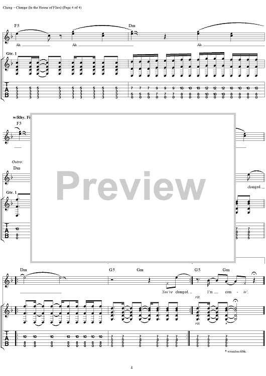 Digital Sheet Music for Change (In the House of Flies) by Deftones, Chino Moreno, Chi Cheng, Abe Cunningham scored for Guitar Tab/Vocal; id:286537
