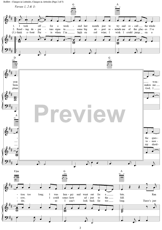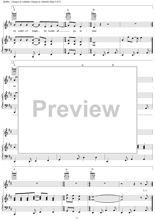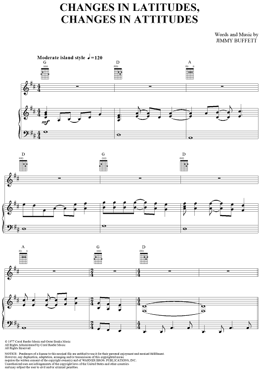 "Changes in Latitudes, Changes in Attitudes" Sheet Music by Jimmy Buffett