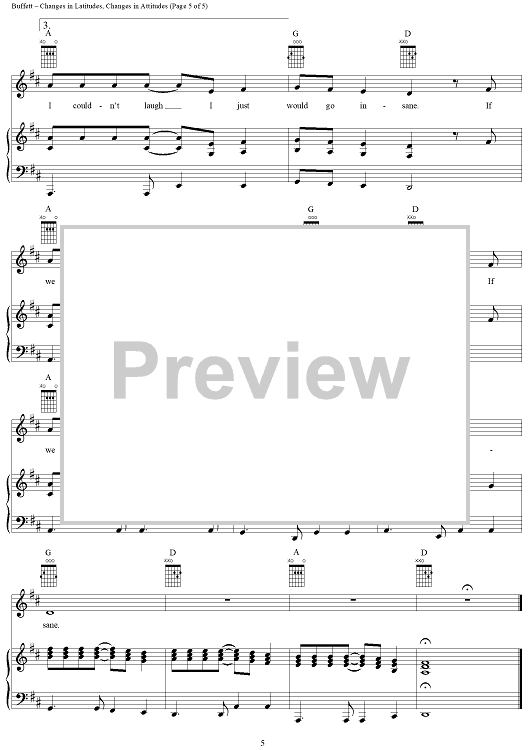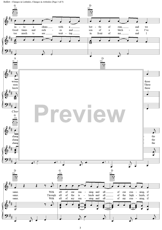 Digital Sheet Music for Changes in Latitudes, Changes in Attitudes by Jimmy Buffett scored for Piano/Vocal/Chords; id:304259
