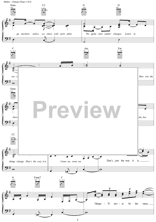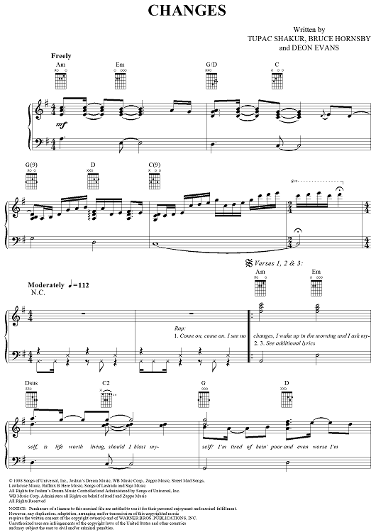Digital Sheet Music for Changes by Bruce Hornsby, 2Pac, Deon Evans scored for Piano/Vocal/Chords; id:286727