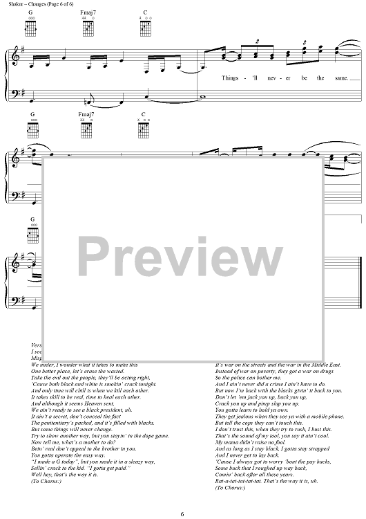 "Changes" Sheet Music by 2Pac