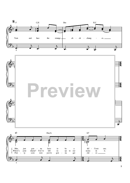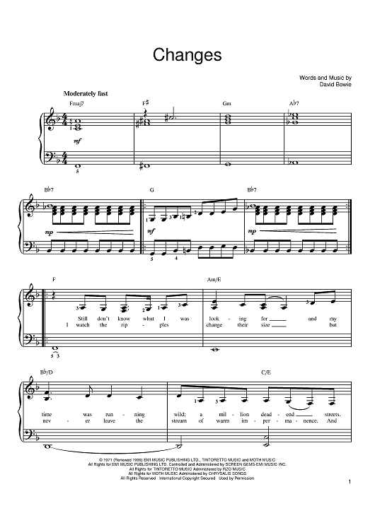 Digital Sheet Music for Changes by David Bowie, Butterfly Boucher scored for Easy Piano; id:379412