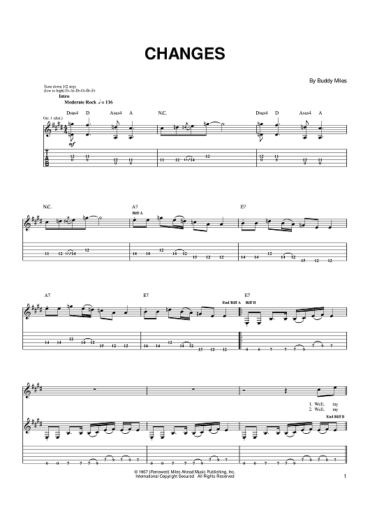 Digital Sheet Music for Changes by Jimi Hendrix, Buddy Miles scored for Easy Guitar; id:401539