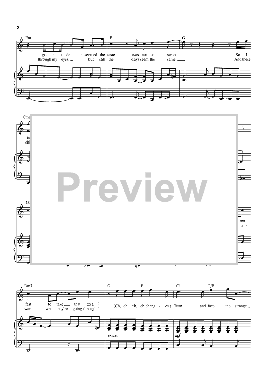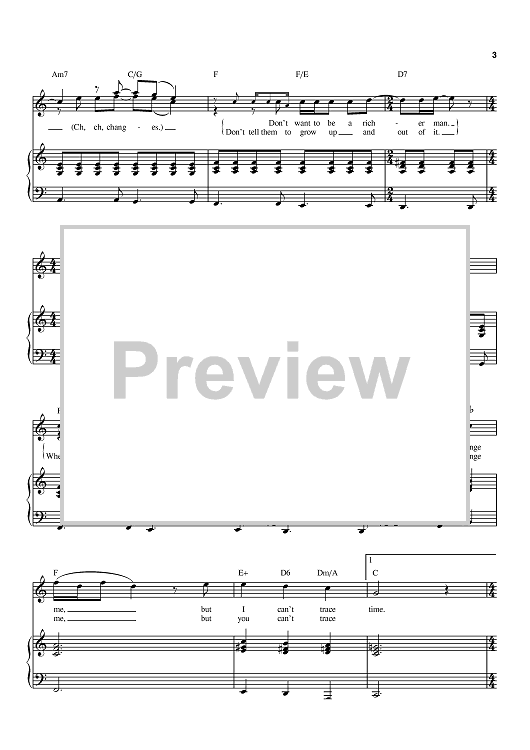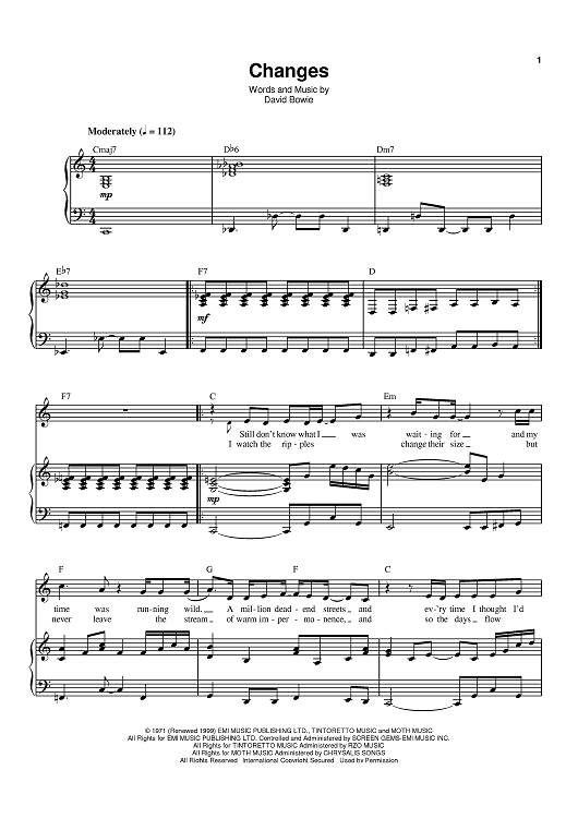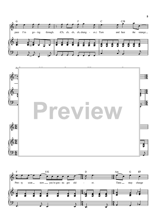 Digital Sheet Music for Changes by David Bowie scored for Piano/Vocal/Chords; id:402615