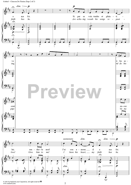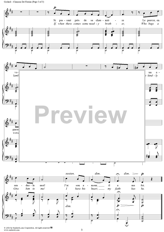 Digital Sheet Music for Chanson de Florian (Florian's Song) by Benjamin Godard, Jean-Pierre Claris de Florian scored for Voice/Piano; id:250840