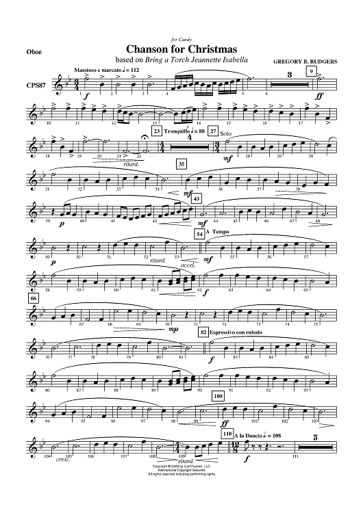 "Chanson for Christmas - Oboe" Sheet Music by Gregory B. Rudgers