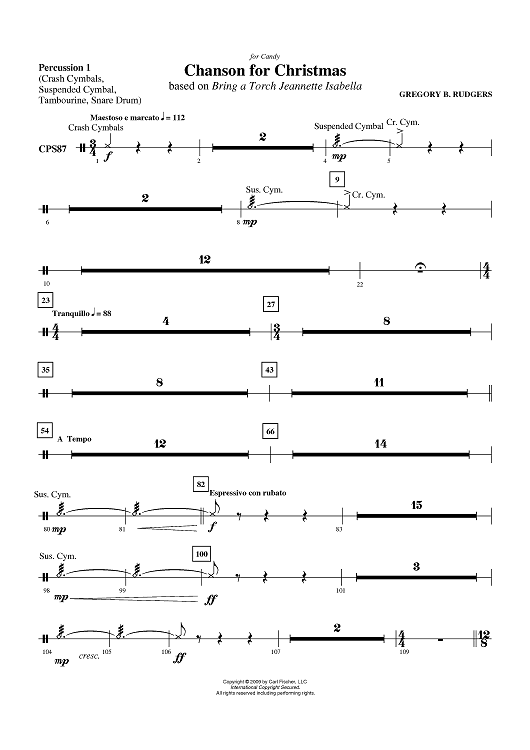 "Chanson for Christmas - Percussion 1" Sheet Music by Gregory B. Rudgers