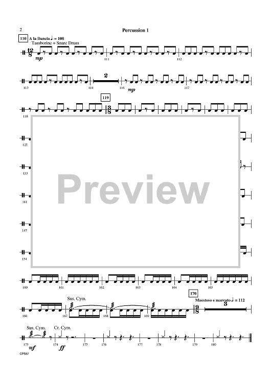 Digital Sheet Music for Chanson for Christmas - Percussion 1 by Gregory B. Rudgers scored for Concert Band; id:405597