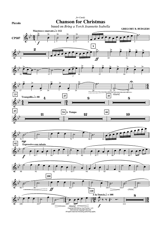 "Chanson for Christmas - Piccolo" Sheet Music by Gregory B. Rudgers
