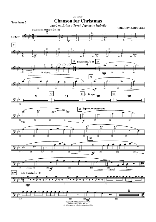 Digital Sheet Music for Chanson for Christmas - Trombone 2 by Gregory B. Rudgers scored for Concert Band; id:405602