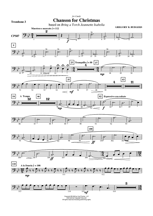 "Chanson for Christmas - Trombone 3" Sheet Music by Gregory B. Rudgers