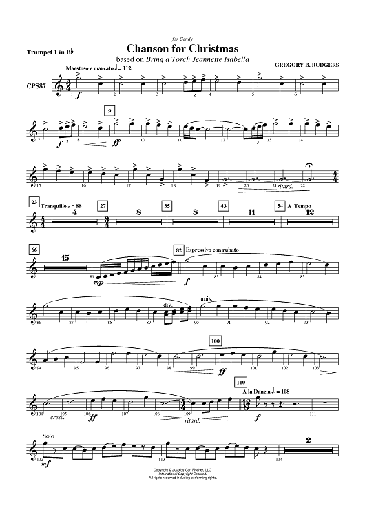 "Chanson for Christmas - Trumpet 1 in B-flat" Sheet Music by Gregory B. Rudgers