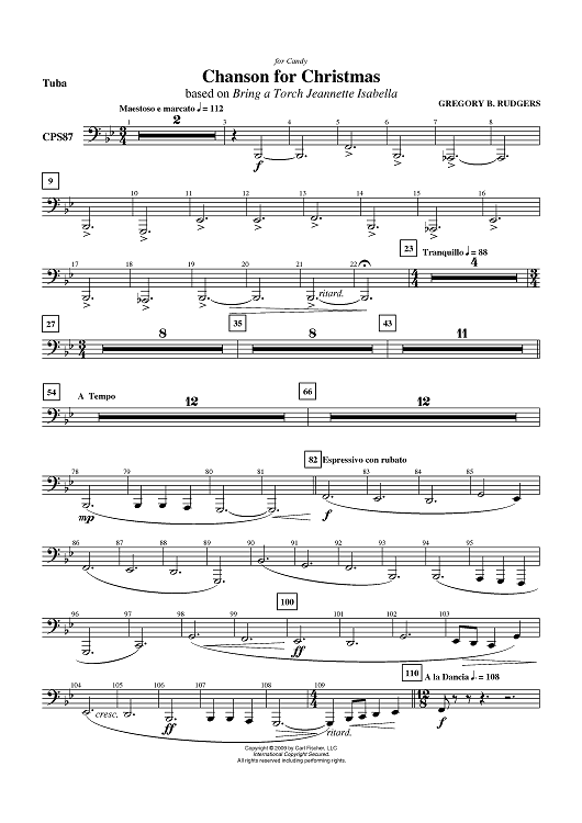 "Chanson for Christmas - Tuba" Sheet Music by Gregory B. Rudgers