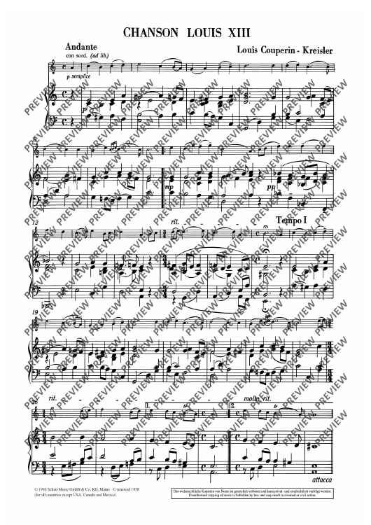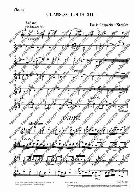 Digital Sheet Music for Chanson Louis XIII. et Pavane by Fritz Kreisler scored for Violin And Piano; id:471406