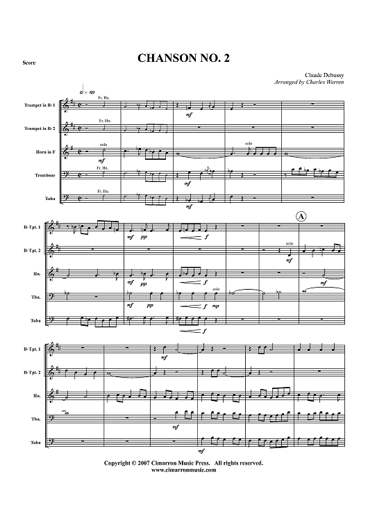 Digital Sheet Music for Chanson No. 2 - Score by Claude Debussy, Charles Warren scored for Brass Quintet; id:424333