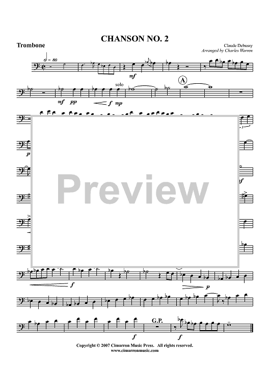 "Chanson No. 2 - Trombone" Sheet Music by Claude Debussy