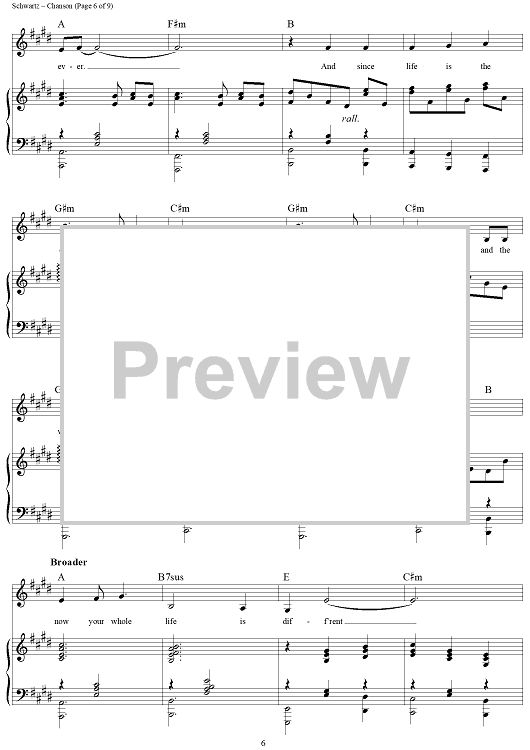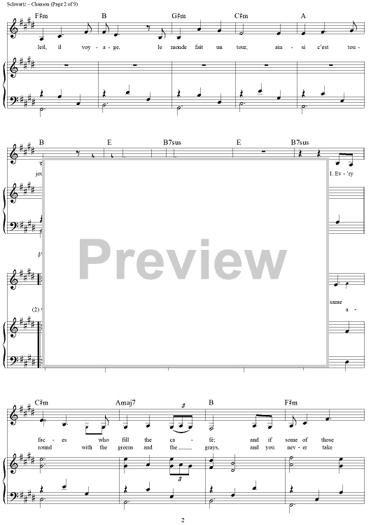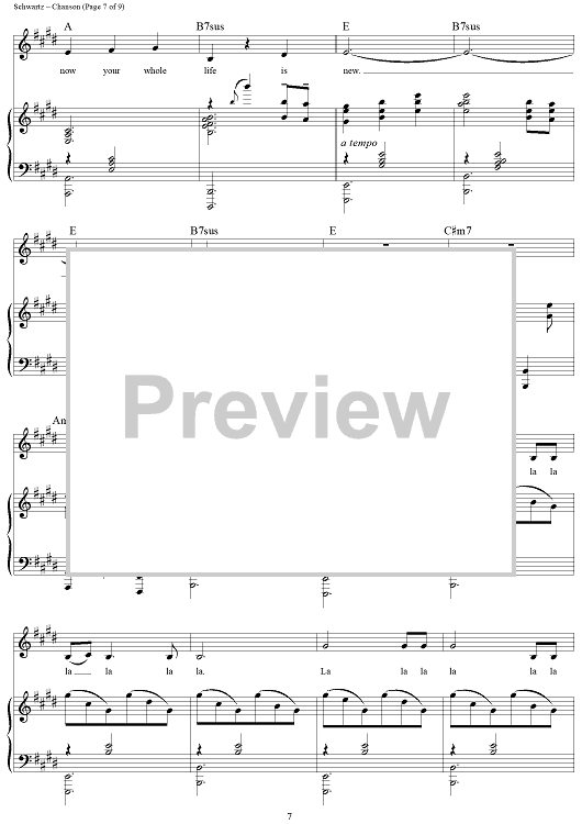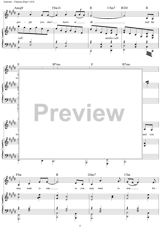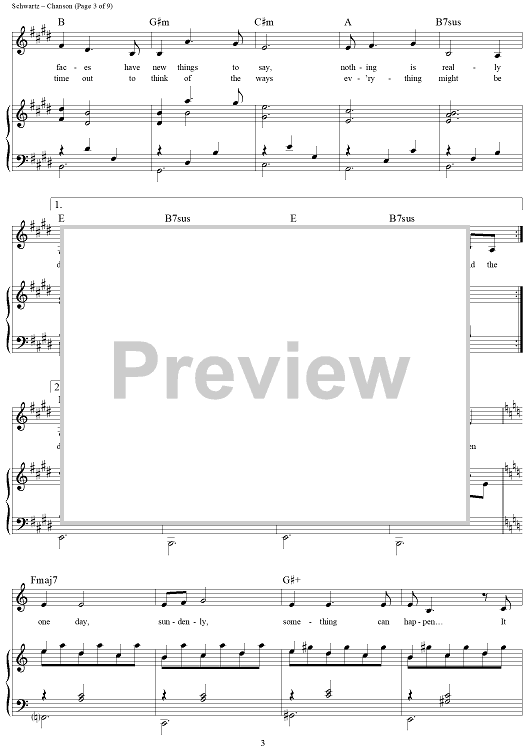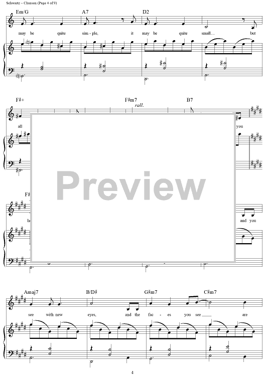 Digital Sheet Music for Chanson by Stephen Schwartz scored for Piano/Vocal/Chords; id:288132