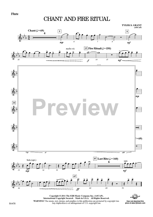 Digital Sheet Music for Chant and Fire Ritual - Flute by Tyler S. Grant scored for Concert Band; id:425886