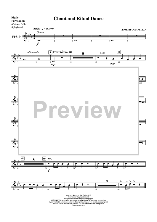 Digital Sheet Music for Chant and Ritual Dance - Mallet Percussion by Joseph Compello scored for Concert Band; id:435840