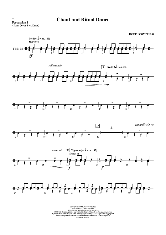 "Chant and Ritual Dance - Percussion 1" Sheet Music by Joseph Compello
