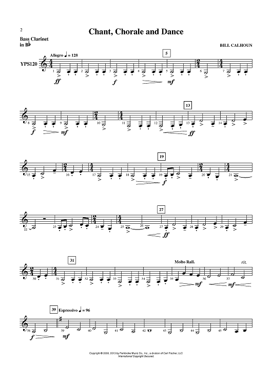 "Chant, Chorale and Dance - Bass Clarinet in Bb" Sheet Music by Bill Calhoun