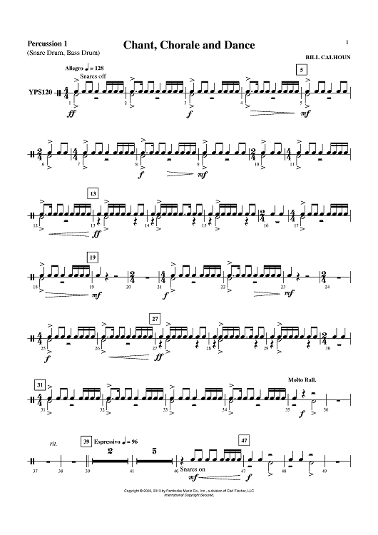 "Chant, Chorale and Dance - Percussion 1" Sheet Music by Bill Calhoun