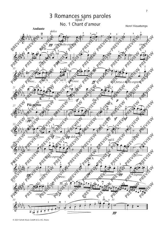 "Chant d’amour in D flat major" Sheet Music by Henri Vieuxtemps
