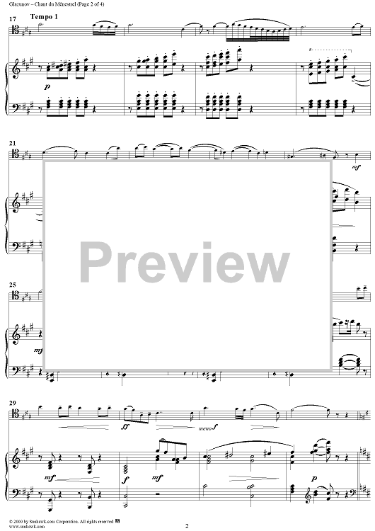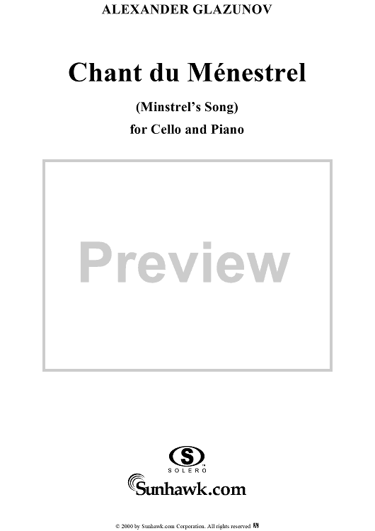 Digital Sheet Music for Chant du Ménestrel, Op. 71 - Piano by Alexander Glazunov scored for Cello/Piano; id:268747