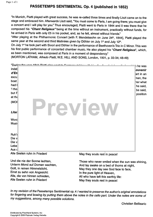 Digital Sheet Music for Chant réligieux - Preface by , Alfredo Piatti scored for Preface; id:349310