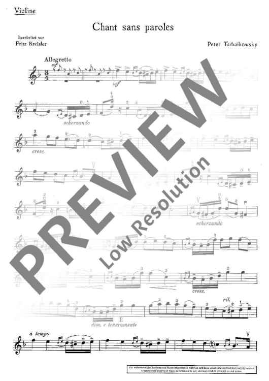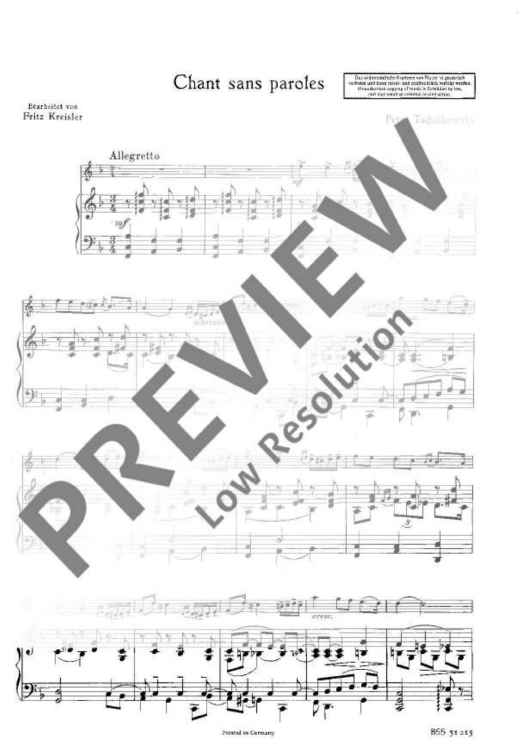 Digital Sheet Music for Chant Sans Paroles by Fritz Kreisler, Peter Ilyich Tchaikovsky scored for Violin And Piano; id:471459