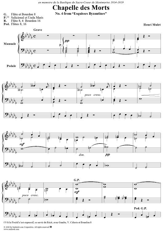 Digital Sheet Music for Chapelle des Morts, No. 4 from "Esquisses Byzantines" by Henri Mulet scored for Organ Solo; id:252775