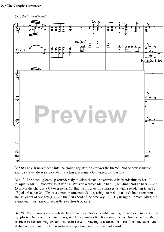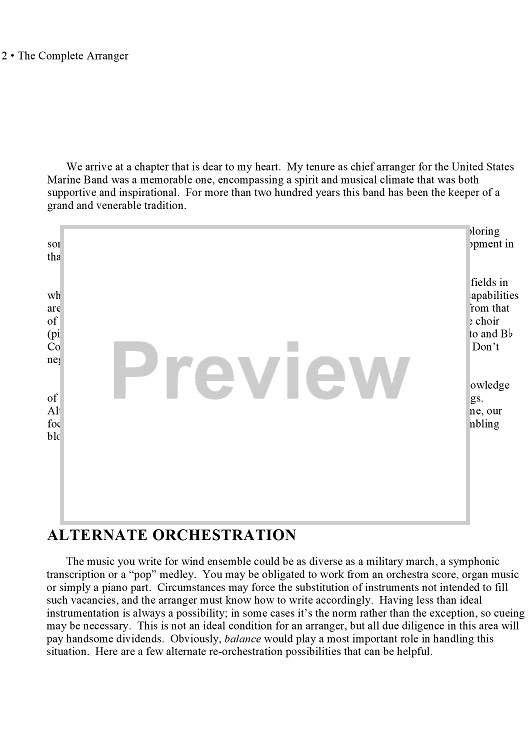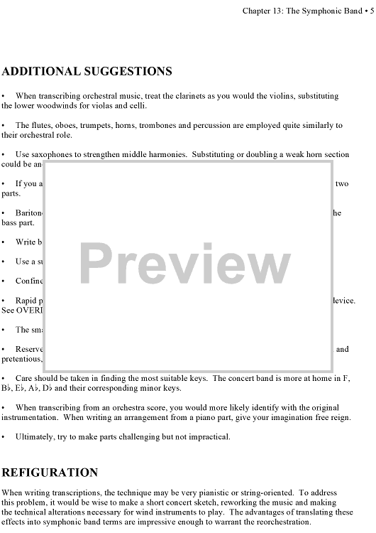 Alternate orchestration -- Additional Suggestions -- Refiguration -- Overlapping Technique -- Arrangements for the Symphonic Band