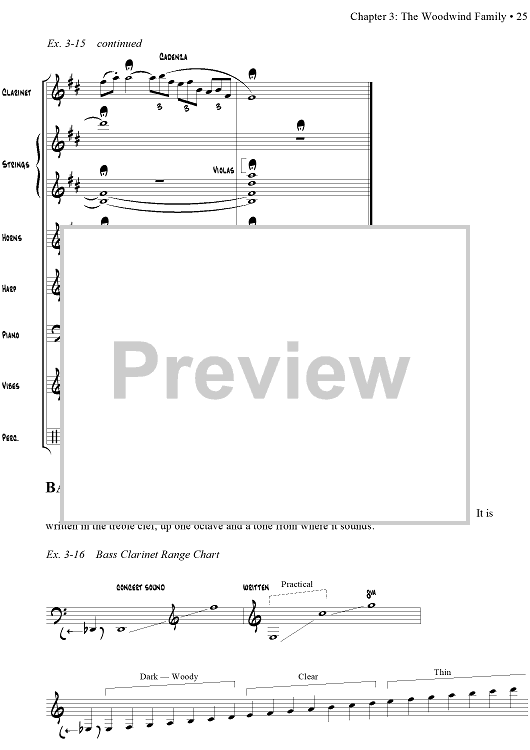 Piccolo -- Flute -- Alto Flute -- Bass Flute -- Clarinet -- Bass Clarinet -- Eb Contra-Alto Clarinet -- Bb Contra-bass Clarinet -- Oboe -- English Horn -- Bassoon -- Scoring the Woodwinds