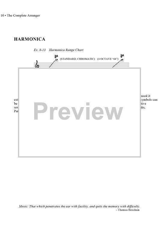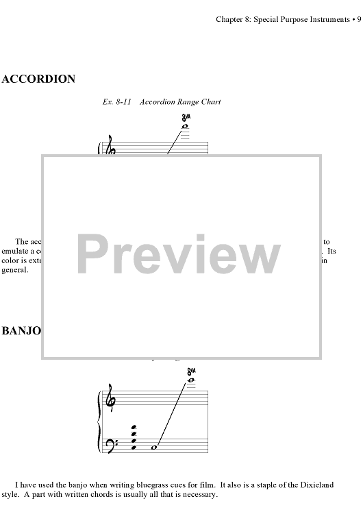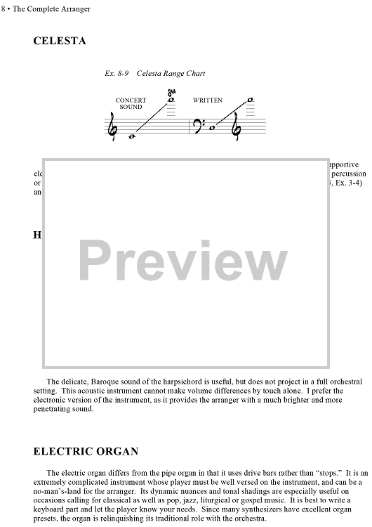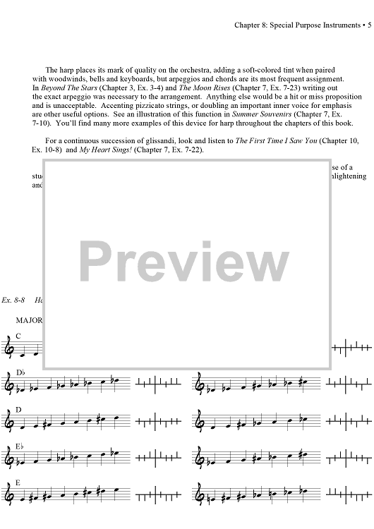Harp -- Glissandos -- Harmonics -- Arpeggios -- Harp Glissando Diagrams -- Celesta -- Harpsichord -- Electric Organ -- Accordion -- Banjo -- Harmonica
