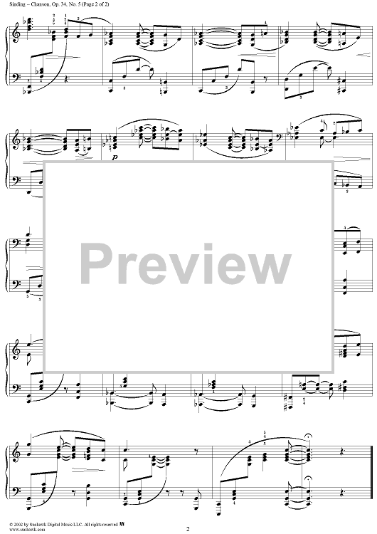 Digital Sheet Music for Characteristic Pieces for Piano, Op. 34, No. 5, Chanson by Christian Sinding scored for Piano Solo; id:257773