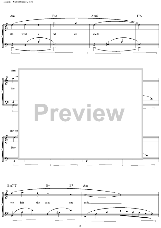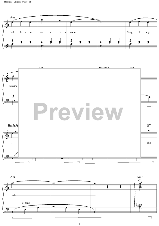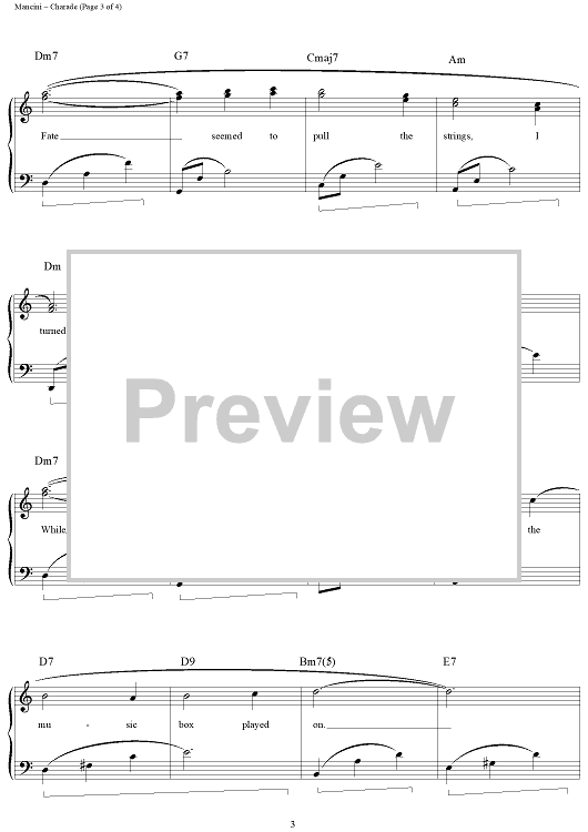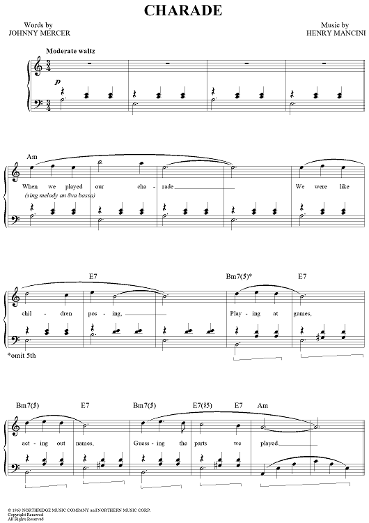 Digital Sheet Music for Charade by Henry Mancini, Johnny Mercer, Andy Williams scored for Piano/Vocal/Chords; id:113199