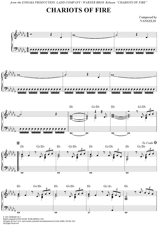 "Chariots of Fire (Main Title)" Sheet Music by Vangelis